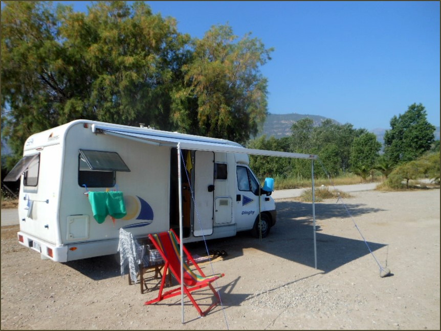 Raggiunta non senza un poco di fatica seguendo le indicazioni di un collega incontrato nel 2012 a Skoutàri (Lakonìa), la spiaggia dei camperisti di Diakoptò è uno dei posti dove abbiamo passato più tempo. Non ha assolutamente nulla di speciale, ma insieme a Krya Vrysi e a Sagiada è il top per il camperista edonista, anche se negli ultimi anni è stata invasa dai camperisti-e-basta, a cui forse non sfugge il piacere di godere di uno spazio gratuito, fornito di acqua (tre docce col passare degli anni sempre più precarie) e abbastanza frequentato da altri perché è una buona base prima dell’imbarco a Patrasso, da cui dista una quarantina di chilometri.