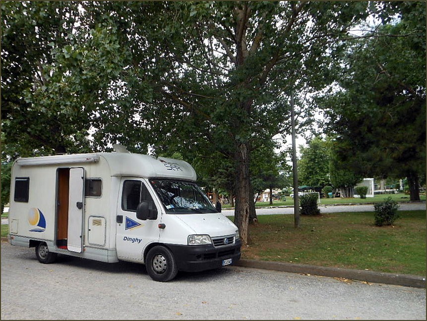 Visitare Filippi è stata una esperienza indimenticabile. In realtà nelle località più note lo spazio per sostare con il camper non manca, perfino nell’affollatissima Olimpia, ma Filippi è veramente un’altra storia. Parcheggio gigantesco appena fuori dall’abitato di Krinìdes, ben ombreggiato e dotato di un paio di fontanelle. Prima dell’ingresso nell’area archeologica, un bar ristorante in mezzo a un prato verdissimo e ben curato, con un attrezzato parco giochi e un blocco di servizi igienici aperto anche di notte. Gli scavi sono tenuti in grande ordine, il personale è molto cordiale e premuroso. Il Museo, a cui si accede con lo stesso biglietto, è piccolo ma molto istruttivo. Un’oasi nell’assolatissima pianura tra Kavàla e Serres. Da non perdere.