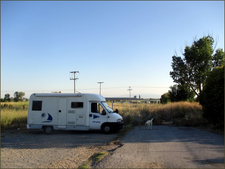 Al di là degli indiscutibili meriti sia dell’area archeologica sia (soprattutto) del Museo, Pella non è un luogo accogliente per i camperisti. Unica fontana nella “piazza” del paese, unico parcheggio lo sterrato davanti all’ingresso degli scavi. Ma il sito vale il viaggio, e anche la lotta con le zanzare durante il pernottamento.