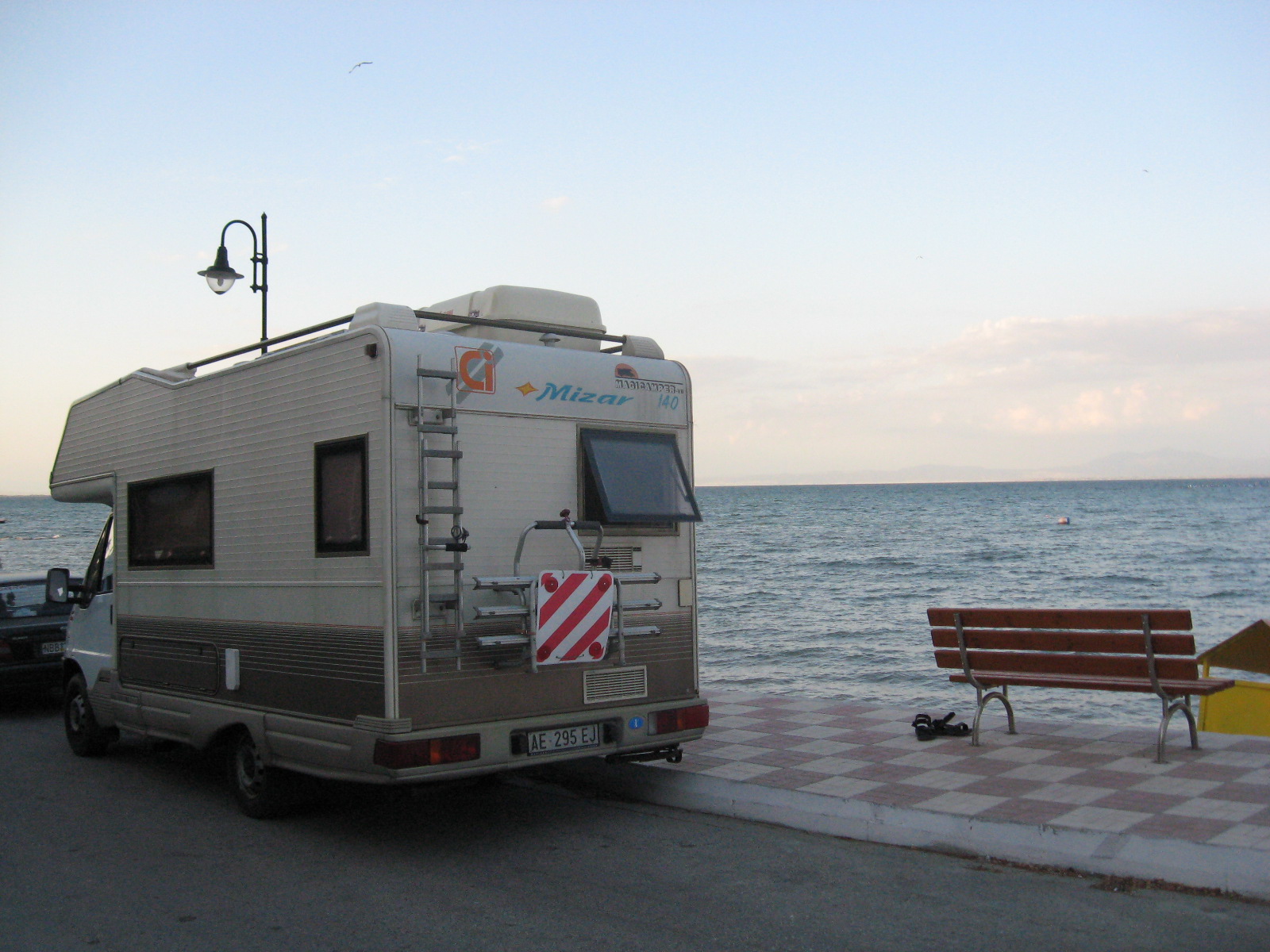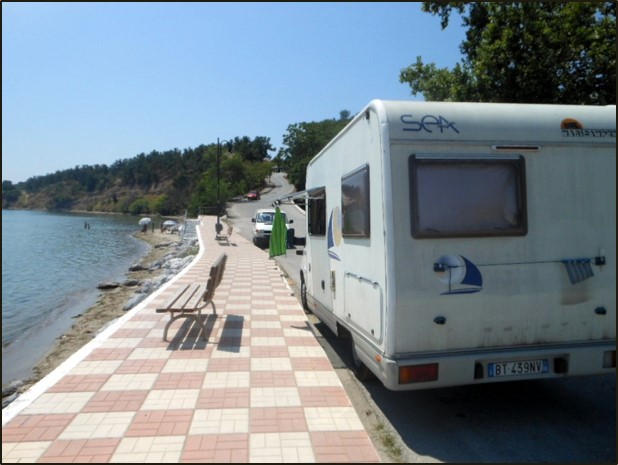 Non è esattamente un posto da camperisti edonisti, ma come qualità da “ultima spiaggia” è sicuramente al top di quelle che abbiamo scoperto nei nostri viaggi. In pratica, è la propaggine a mare del grande centro agricolo di Katerìni, ai piedi dell’Olimpo. Ben indicato a partire dal centro della città, Olympiakì Aktì è un paesone artificiale frutto di una evidente lottizzazione accuratamente pianificata, con il classico vialone pieno di negozi di ogni genere (agorà) e una lunghissima spiaggia attrezzata con docce e fontanelle. E ovviamente un sacco di gente. Sosta sul lungomare, tra una doccia e una panchina, senza particolari problemi di rumore, con vista sullo struscio. Acqua pulita ma torbida verso sera, e piena di alghe.