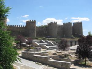 Recuperiamo l’A-5, entriamo nella Mancha di Don Quixote e lasciamo l’Autovìa a Velada, per andare a prendere la N-502. Dopo una cinquantina di km la strada sale verso la Sierra de Gredos. Il paesaggio da brullo diventa verdissimo, ci sfilano via castelli e borghi fortificati. Verso le 11 sosta tattica a una fontana un po’ prima di Puerto del Pico (1352 m s.l.m.). Verso il fondovalle si vedono chiare le tracce di una antica strada romana. Si riparte e dopo una decina di km nuova sosta a godersi la frescura in mezzo agli alti pascoli della Sierra: mucche a destra, mucche a sinistra, il paesaggio familiare degli alpeggi nostrani. La strada scende per qualche km e poi risale al Puerto de Menga (1564 m s.l.m.). Poi scende ancora verso Àvila (1131 m s.l.m.), uno degli obiettivi della giornata, circondata da campi di grano.