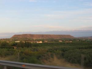 Superiamo Saragozza attraverso una tangenziale trafficatissima di TIR che non si curano dei limiti di velocità, e a Nuez de Ebro giriamo i 5000 km. Due giorni fa eravamo a 4000 dalle parti di Evora in Portogallo! Sono le otto di sera, il sole è ancora alto ma alla meta mancano ancora più di 200 km. Seguiamo la N-2, stretta ma molto scorrevole e poco trafficata. Il paesaggio della valle dell’Ebro è pieno di suggestivi calanchi, subito dopo Fraga la statale si trasforma in superstrada A-2 e possiamo viaggiare un po’ più allegri.