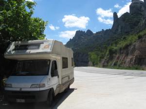 Anche se è prestissimo, non è stato facilissimo sistemare il Mizar lungo la strada, allora optiamo per un parcheggio a pagamento nelle immediate vicinanze dell’ingresso. Monserrat vale sicuramente il viaggio, e ci passiamo quasi tre ore. Al ritorno troveremo la bella sorpresa di un paio di autovetture ispaniche piazzate a ridosso del camper, ma con una arditissima manovra Mirella si libera e proseguiamo. Per fermarci pochi minuti dopo su uno slargo con vista sulla valle e sulla chiesetta di Santa Cecilia, del X secolo.