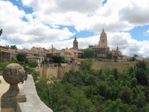 Sesta alba in Spagna. Qui in altura si dorme benissimo. Ci alziamo con molta calma, il cielo è cupo e minaccia pioggia. E infatti poi fa uno scroscio e arriva un bel sole tiepido che rallegra la visita di questa città davvero molto bella, e interessante. Entriamo nella città murata attraverso il Postigo del Sol, una rampa che attraverso un dedalo di viuzze ci conduce rapidamente alla Plaza Major, cuore del centro storico. Città di antichissime origini, patrimonio UNESCO, la troviamo molto più affascinante di Àvila, e ne percorriamo con attenzione i vecchi quartieri e i vicoli del Ghetto.