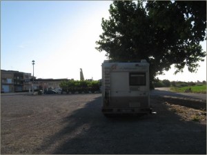 Scende ancora la notte. La prima uscita dopo il tramonto si chiama Bell-lloc d’Urgell. Ci infiliamo in paese, lo superiamo, e con la classica botta di fortuna troviamo un ampio sterrato proprio alla fine del paese, parcheggio di un ristorante molto frequentato da camionisti.