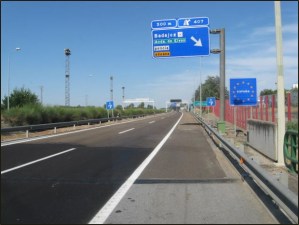 Superiamo Saragozza attraverso una tangenziale trafficatissima di TIR che non si curano dei limiti di velocità, e a Nuez de Ebro giriamo i 5000 km. Due giorni fa eravamo a 4000 dalle parti di Evora in Portogallo! Sono le otto di sera, il sole è ancora alto ma alla meta mancano ancora più di 200 km. Seguiamo la N-2, stretta ma molto scorrevole e poco trafficata. Il paesaggio della valle dell’Ebro è pieno di suggestivi calanchi, subito dopo Fraga la statale si trasforma in superstrada A-2 e possiamo viaggiare un po’ più allegri.