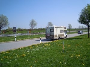 Il traguardo non è raggiunto, ma la sosta è necessaria per fare gasolio. L’Area di servizio Auerswalder è molto bella e accogliente, l’autogrill bello e ben tenuto, atmosfera rilassata e paciosa. E nemmeno troppo caro, almeno a giudicare dall’hot dog gigante in cambio di soli 3 euro. Ma a scanso di equivoci il caffè preferiamo farcelo sul Mizar. Alle 10:30 ci rimettiamo in pista, ancora code a tratti, poi più ci inoltriamo verso Est più il traffico scema, fino a diventare quasi nullo appena superata Dresda. Verso le 12 una sosta velocissima all’Area di servizio Oberlausitz per una foto perché giriamo i primi 1000 km.