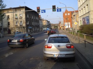 Uno sguardo alla carta. Abbiamo ancora meno di 200 km, facendo la statale 30 fino a Jelenia Gora, bella località turistica dei Sudeti. Da qui la statale 3 che dovremo lasciare a Kaczorów e poi avanti per strade secondarie fino a Wałbrzych. Teniamo una media leggera, la strada è bella ma tortuosa e si attraversano moltissimi paesi e villaggi dalle tipiche architetture della Slesia. Le indicazioni sono molto precise, e non facciamo fatica ad orientarci. In realtà, a Wałbrzych buchiamo un incrocio e ci troviamo in pieno centro. La fortuna aiuta gli sfacciati: c’è un uomo fermo al semaforo, accostiamo e gli chiedo indicazioni, lui mi fa capire che se gli diamo un passaggio va proprio nella nostra direzione e a furia di “lewo” (sinistra) e “prawo” (destra) ci guida fuori dal traffico e poi per i primi 15 km fino a Głuszyca, dove scende ringraziandoci. Da qui non ci sono altre deviazioni e raggiungiamo con grande tranquillità la nostra meta. Nonostante siano passati 11 anni, mi oriento senza problemi ricordando che quella stessa strada l’avevamo fatta di notte nel 1997 per cercare un ristorante aperto dopo le dieci di sera. Velocemente penetriamo in città, superiamo il Rynek dove stanno sistemando il lastricato e parcheggiamo in una delle strade laterali a ridosso del centro.