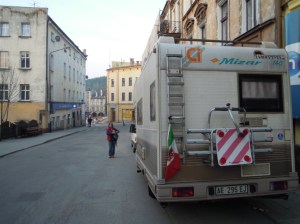 Torniamo al camper, e ci spostiamo in un parcheggio dalle parti della stazione ferroviaria, addossati al capannone del Cinema Mok. Niente acqua né servizi, ovviamente; ma avevamo fatto scorta preventiva al primo benzinaio incontrato all’ingresso Nowa Ruda, e perciò siamo tranquilli. Giornata molto impegnativa, specialmente gli ultimi 200 km di Slesia. A nanna molto presto per la seconda notte di viaggio, sonno profondo.