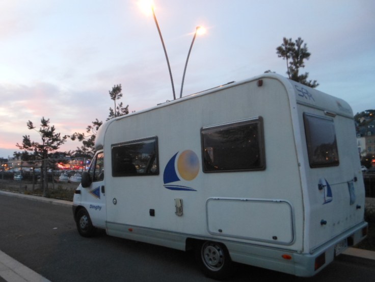A Honfleur c’è un’area di sosta, ma è piena all’inverosimile. E costa più cara del campeggio di Saint-Pierre-en-Port. Lasciamo senza troppe remore la bella cittadina della Côte Fleurie, in verità troppo affollata, e ci spostiamo a Trouville. La situazione non cambia, e allora superiamo un corso d’acqua asciutto per la bassa marea ed entriamo a Deauville, sistemandoci lungo un parco pedonale attrezzato sul viale che va verso il mare, poco distante dalla stazione ferroviaria di Trouville-Deauville. Niente acqua né servizi. Abbiamo cambiato dipartimento, e ora siamo nel Calvados.