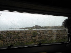 Entriamo in campeggio alle 15:30, siamo praticamente i soli ospiti. Il Camping La Ferme Du Bord De Mer è effettivamente una vecchia fattoria a ridosso di una minuscola baia rocciosa, anzi di una serie di “havres”, improbabili approdi tra le rocce segnalati da minuscoli lampioni. Esploriamo il campeggio, che è assolutamente spartano ma altrettanto simpatico e sicuramente pulito, ci attacchiamo alla corrente e mettiamo in pista le faccende domestiche e un minimo di bucato. Staremo qui una notte e pagheremo 15 euro, corrente inclusa. Verso le cinque comincia un acquazzone che ci investe mentre siamo alle docce. Ripariamo al calduccio nella nostra casetta e ci rifocilliamo dalle emozioni di una settimana piena di esperienze.