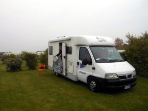 Risveglio placido, ma ci accorgiamo che sotto il muso del Dinghy c’è una perdita di liquido. Questo è un bel guaio, se fossero i freni saremmo bloccati qui minimo fino a domani perché oggi è Pasquetta. Chiamo il nostro amico meccanico, un rapido consulto telefonico e pare chiaro che si tratti di una perdita dal radiatore. Rabbocchiamo e ci mettiamo in pista.