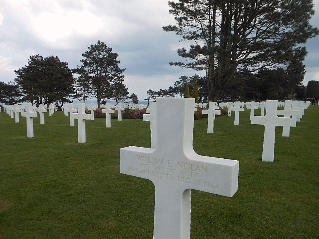 Una decina di migliaia di nomi incisi su pezzi di marmo bianco a forma di croce cristiana o di stella ebraica. Un immenso giardino di 70 ettari, punteggiato da un paio di edifici dall’impronta classica che hanno tutti i monumenti funebri. Una lunga scalinata in pietra scende alla spiaggia, oggi silenziosa e deserta. Mancano pochi minuti alla chiusura e ci spostiamo ancora, attraversando una sequenza di villaggi dalle case in pietra grigia e le finestre bianche e le persiane rosse o azzurre, con davanti giardini pieni di fiori. Data l’ora, evitiamo l’affollamento del Museo di Omaha Beach e la discesa alla spiaggia.