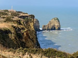 Settant’anni dopo, questo luogo è ancora martirizzato. Sulla punta c’era una poderosa batteria che nelle ore precedenti lo sbarco fu bombardata a lungo. La falesia, alta 30 metri, fu presa d’assalto a caro prezzo da un reparto di Ranger, a cui è dedicato il monumento sul precipizio. In realtà, il bombardamento fu del tutto inutile, perché le batterie non erano ancora attive o erano state arretrate. Invece, la guarnigione tedesca che era ben riparata nelle fortificazioni arretrate fu messa sull’avviso e raggiunse le sue postazioni in netta condizione di superiorità ambientale, lanciando bombe dall’alto della scogliera ed appostandosi tra i crateri. Circa 500 tra americani e tedeschi si contesero per tutta la giornata e parte della notte questo lembo di terra che avrebbe dovuto costituire un caposaldo per la penetrazione nell’interno, lasciando sul terreno centinaia di morti. L’ennesimo inutile massacro. Giriamo a lungo tra le buche dei bombardamenti e le macerie dei bunker. Passiamo almeno due ore tra questi resti assurdi, non ci sono parole.