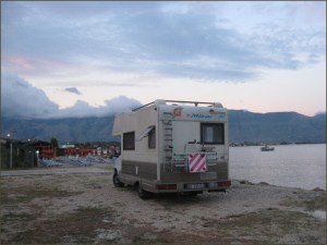 Raggiungiamo e superiamo Vlore, prima sosta nel parcheggio di un bar sulla spiaggia all’ingresso di Orikum. A Himare siamo stati accolti con un benvenuto a base di birra locale, offerto dagli abitanti di una villetta sul lungomare, ed abbiamo deciso di restare per la seconda notte. Ultima sosta notturna nel parcheggio dell’area archeologica di Butrint.