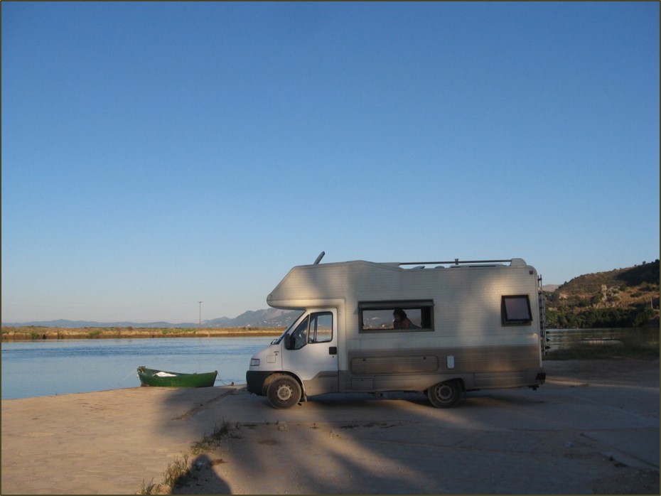 Raggiungiamo e superiamo Vlore, prima sosta nel parcheggio di un bar sulla spiaggia all’ingresso di Orikum. A Himare siamo stati accolti con un benvenuto a base di birra locale, offerto dagli abitanti di una villetta sul lungomare, ed abbiamo deciso di restare per la seconda notte. Ultima sosta notturna nel parcheggio dell’area archeologica di Butrint.