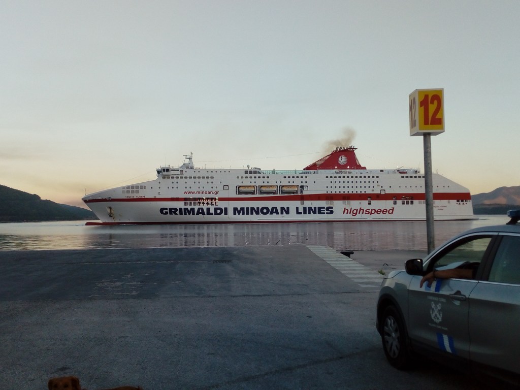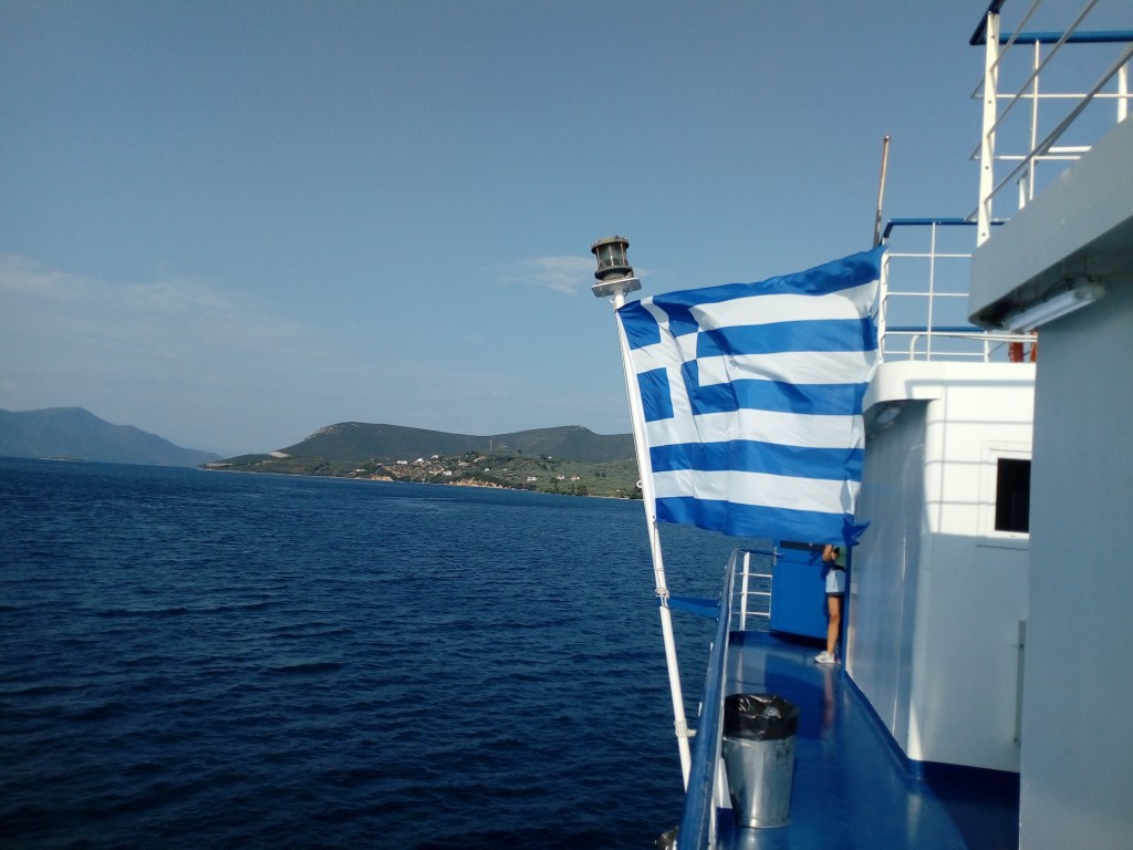 21 luglio, martedì. In realtà, si doveva partire ieri in tarda serata, ma la nave ha 10 ore di ritardo e la notte, invece di stare nel porto ad aspettare, ci piazziamo vicino alla chiesetta di Agios Nektarios in alto sulla baia, recentemente restaurata. Salpiamo all’alba delle 07:45. Sarà la prima volta che viaggiamo in giornata, arriveremo ad Ancona verso l’una di notte.