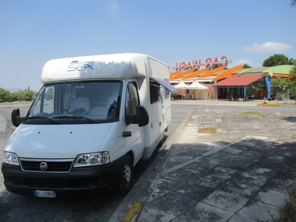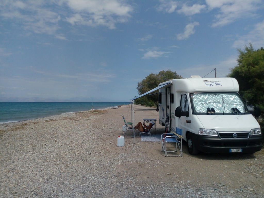 2 luglio, giovedì. Entrati in Grecia verso le 9 del mattino dopo un rapido controllo anti Covid, mentre ci spostiamo verso la solita prima tappa a Sagiada il rumore nel semiasse di sinistra – già avvertito negli ultimi km prima di Ancona – si fa più insistente. Così, nei pressi di Asproklisi ci fermiamo da un meccanico, che ci rimanda alla filiale FIAT di Igoumenitsa. Nessun dubbio: si avvicina il weekend, e prevenire è meglio che curare. Una rapida visita e i bravissimi tecnici, dopo aver individuato il problema e ordinato il pezzo di ricambio necessario, ci danno appuntamento per la mattina dopo. Ci tranquillizzano sulla possibilità di raggiungere comunque Sagiada, cosa che facciamo per goderci tranquillamente il tanto sognato primo giorno di Grecia 2020, anno segnato da un’emergenza mai vista nella nostra vita. Il programma è stavolta molto semplice: tre settimane invece delle solite quattro, poche tappe lunghe in posti ben conosciuti.