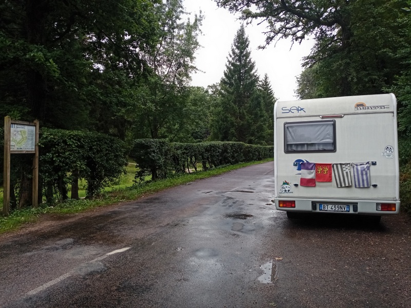 Sempre seguendo le belle nazionali e dipartimentali, dopo una sosta per gasolio a Montmirail, superiamo Parigi sul lato est. Breve sosta per pranzo a Vauciennes, sfioriamo Beauvais dove imbocchiamo la N31, a Gournay-en-Bray ci immettiamo sulla D915 con obiettivo Dieppe. Piove ancora a dirotto, dopo 350 incrociamo la A28, pensiamo di evitare l’arrivo al mare sotto la tempesta oltre a doversi un po’ sbattere per trovare parcheggio, e ci decidiamo a prendere la prima autostrada di questo viaggio. Passiamo sulla A9, procediamo fino all’uscita 9, che ci collega alla D20 verso Saint Valery-en-Caux, poi prendiamo la D50 verso Cany-Barville, con la sua tranquilla e già sperimentata oasi del Lac de Caniel, e il suo ampio e molto ben tenuto parcheggio gratuito.