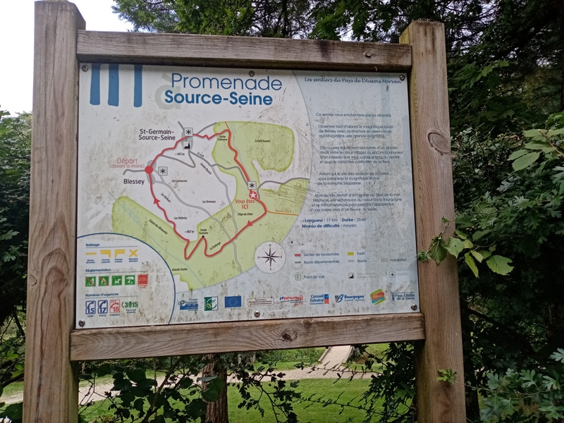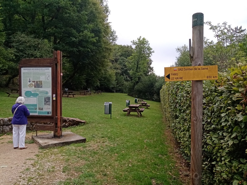 GIOVEDÌ 3 AGOSTO. Partiti prima delle nove, entriamo in Francia verso l’una del pomeriggio, dalla solita Vallorbe. Prendiamo la N57 e facciamo sosta tattica a La Cluse-et-Mijoux, nella ormai classica bella piazzola ai piedi del forte. A Pontarlier imbocchiamo la D72 (che entrati nel Giura diventa D472), superiamo Salins-les-Bains e puntiamo a Dijon, dove prendiamo la D971. La strada è molto bella, superiamo la molto pittoresca Saint-Seine-l’Abbaye, e dopo qualche km veniamo attratti da un cartello che indica le Sources de la Seine. Una strada locale scende verso il fondovalle e ad uno slargo si trova un minuscolo parcheggio nei pressi di una staccionata, e poco più avanti una sterrata che porta a una locanda. La staccionata si interrompe nei pressi di un cartello, e attraverso pochi gradini si raggiunge uno spiazzo erboso attrezzato per picnic, molto ben tenuto a cura della città di Parigi. Nell’area vi sono alcuni resti di un tempio gallo-romano dedicato alla dea Sequana, una grotta artificiale che raccoglie l’acqua della sorgente principale della Senna (ma intorno ve ne sono altre sei), un ponte in muratura che è praticamente il primo delle migliaia di ponti sul grande fiume, che qui è poco più di un rigagnolo ma ricco d’acqua nonostante si sia in piena estate. La visita dura circa un’ora, ed è una buona occasione per sgranchire le gambe dopo quasi 500 km, intervallati da una sola tappa.