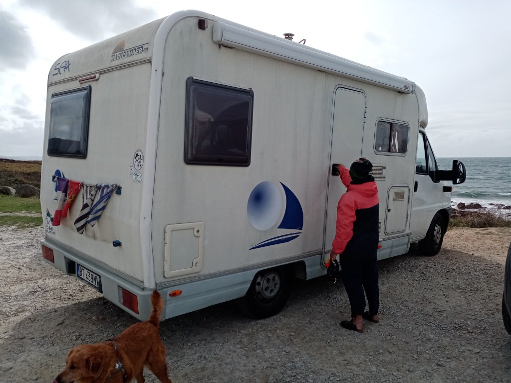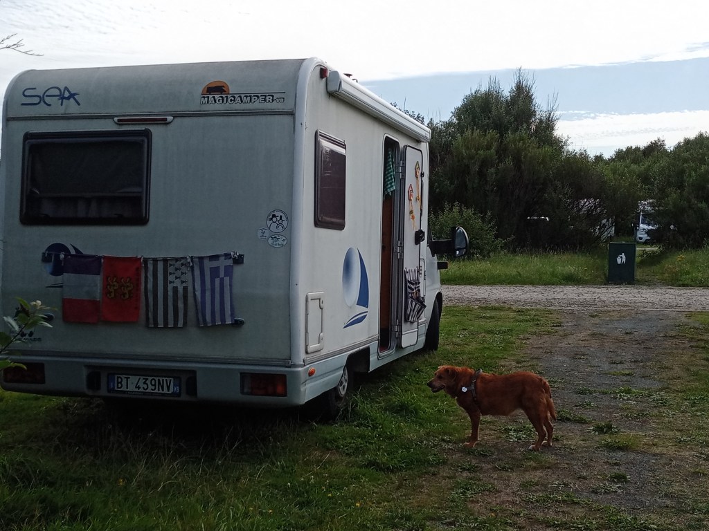 Mentre comincia a piovere, facciamo vari tentativi per i vari campeggi presenti su questo tratto di costa, e anche verso l’interno inoltrandoci tra stradine e minuscoli villaggi. Niente da fare, allora si torna al punto e verso le cinque si spegne definitivamente il motore, almeno per oggi. Vari acquazzoni si susseguono mentre ceniamo, poi finalmente smette, e ci godiamo un bel tramonto restando al calduccio dentro il Dinghy.
