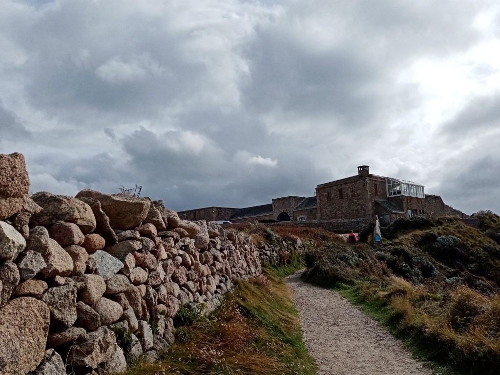 SABATO 12 AGOSTO. Durante la notte, l’alta marea è arrivata a lambire l’alto muraglione su cui siamo parcheggiati. Questa piazzola è praticamente a bordo strada, ma abbiamo dormito alla grande cullati solo dal fruscio delle onde. Non c’è un alito di vento, nei campi dall’altro lato della strada un po’ di nebbiolina, sulla sabbia fatta di minutissimi frammenti di conchiglie gabbiani che fanno festa. Partiamo abbastanza presto, per continuare la ricerca di un campeggio che ahimè anche oggi sarà infruttuosa. Come da programma, puntiamo verso Barfleur ma non c’è posto né nei campeggi né nella nuovissima area attrezzata. Torniamo verso sud, a Jonville stessa storia. Attraversiamo Saint-Vaast-La-Hogue, dove sfruttiamo l’area attrezzata, ovviamente piena, per fare carico e scarico. Ora di pranzo: posti incantevoli, ma è praticamente impossibile trovare un angolo dove fermarsi, e torniamo alla nostra postazione di Fontenay, che miracolosamente non è stata occupata da nessuno. Facciamo di nuovo il punto: dopo Barfleur, il nostro piano prevedeva di raggiungere il promontorio che chiude a est la baia di Cherbourg, ovvero Cap Lévi, ed è qui che arriviamo verso le cinque, viaggiando con molta calma ed attenzione tra strette stradine e piccoli villaggi. Ci attende un sito veramente spettacolare, un parcheggio gratuito in cima a una falesia, ai piedi del Faro in granito rosa alto 28 metri, messo verso metà ‘800 a segnalazione di pericolose secche, ricostruito nel 1947 dopo che i nazisti in ritirata l’avevano fatto saltare. Dal parcheggio parte una bella passeggiata alta sulla scogliera fino al Fort du Cap Lévi. Niente di meglio di una bella sgambata per riprenderci dai km percorsi inutilmente sulle quattro ruote. Ben abbigliati, perché non c’è per niente caldo. Il forte, costruito in epoca napoleonica e utilizzato con finalità militari fino alla fine della seconda guerra mondiale, è oggi trasformato in un resort, mantenendo le caratteristiche del passato, e si può visitare in lungo e in largo. Vale il viaggio, cinque stelle.