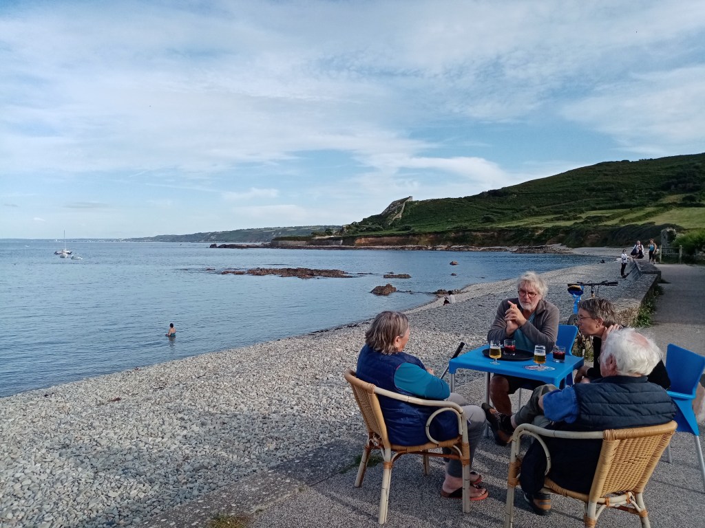VENERDÌ 18 AGOSTO. Ieri sera, per la prima volta, abbiamo tirato tardi sotto un cielo limpido e stellato. Stamattina, sveglia abbastanza presto, e lunga camminata verso il centro in cerca di una boulangerie per scorta pane e croissant. Dopo colazione, passeggiata al mare, che è in alta marea. Sfruttiamo la tariffa restando fermi qui anche per pranzo, e intanto cominciamo a fare il piano del rientro, perché siamo a 1087 km da casa. Oggi ne faremo non più di 200, puntando a sud est verso Le Mans. Deciso.