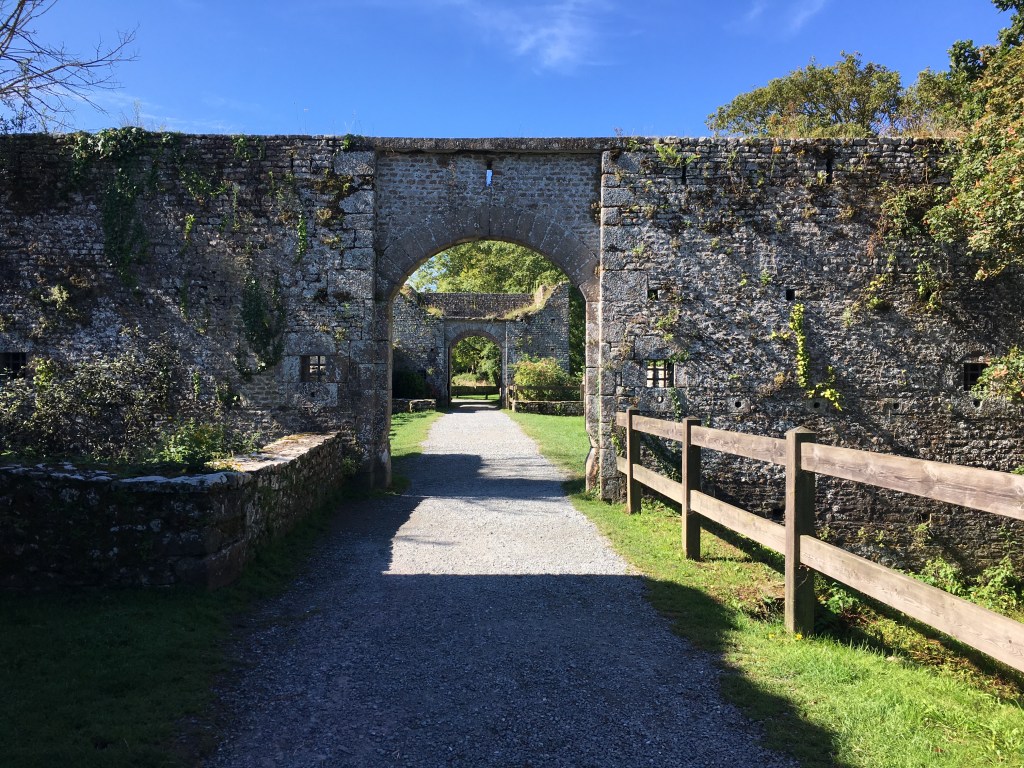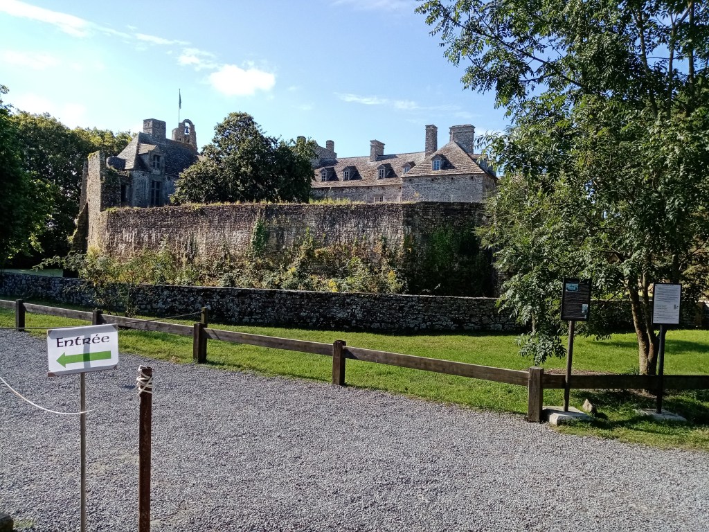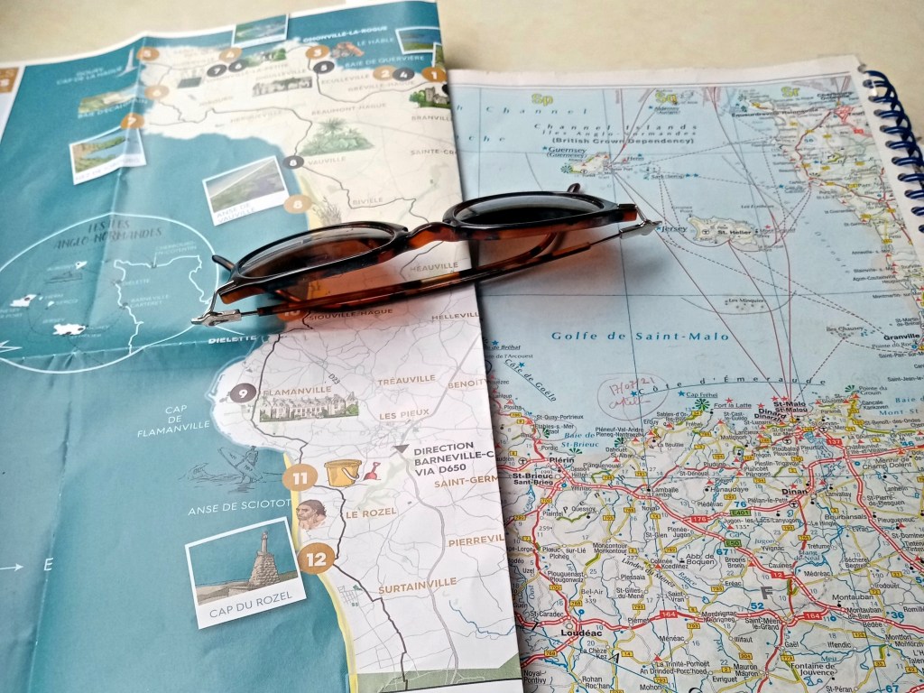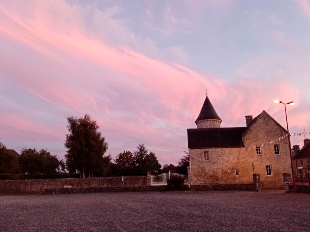 Approfittiamo del parcheggio per pranzare, e verso le quattro ci rimettiamo in marcia, senza un chiaro programma. Seguendo strade secondare quanto più possibile costiere, arriviamo a Carteret, affollatissima; superiamo Barneville, stessa situazione; presa la D15 a Portbail, pressati dal traffico, riusciamo a malapena a rallentare per dare un’occhiata al famoso ponte a tredici arcate che sovrasta la baia formata dall’estuario dell’Olonde. Impossibile sostare, sarà per la prossima volta. Sarà molto complicato trovare un posto per la notte qui sulla costa, e così decidiamo di seguire la D15 che punta nell’interno, e darci come meta Saint-Saveur-le-Vicomte, dove c’è un’abbazia e un castello: in genere, nei pressi di castelli ed abbazie ci sono spiazzi per parcheggiare, e magari sono anche interessanti da visitare. Manco a farlo apposta, il centro storico è chiuso per la rievocazione storica di non so qualche battaglia, e ci tocca procedere. Non vogliamo arrenderci alla prospettiva di fermarci su una delle tante “aire de repos” a bordo strada. Mi viene in mente che pochi km prima un cartello a una rotonda indicava un “Manoir du Parc“, torniamo indietro ma si tratta di una specie di castrum medievale trasformato in fattoria, dove vendono prodotti locali e affittano camere, nei pressi del villaggio di Huanville. Il negozio oggi è chiuso, possiamo curiosare in giro, ma non sostare per la notte. Riprendiamo il viaggio sulla D15, stavolta interrogo park4night che mi dà un parcheggio a Picauville, dove arriviamo che sono già le otto: un piazzale, un monumento, una chiesa, in giro nemmeno un’anima. Abbiamo impiegato molto tempo per fare pochi chilometri, e dunque senza allontanarci troppo dalla costa ovest che nei nostri piani vogliamo seguire fino alla baia di Mont-Saint-Michel. Per stasera, questa è una buona scelta. Domani è un altro giorno.