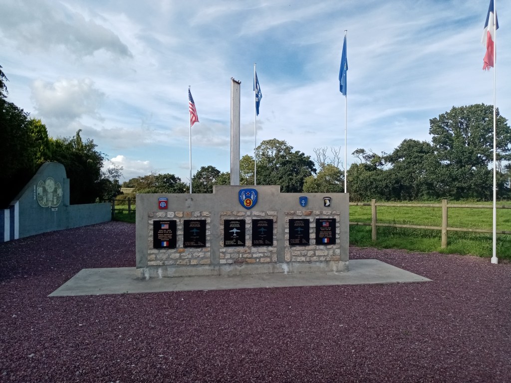 MERCOLEDÌ 16 AGOSTO. Veniamo svegliati dal suono dei campanacci ed intuiamo nella nebbia che si tratta di una piccola mandria di bovini al pascolo a due metri dal camper. Temperatura (dentro) sotto i 16°, fuori non mi azzardo a uscire. Caffè e croissant mentre si alza la nebbia e appare un tiepido sole un po’ velato. Due passi a piedi nel villaggio che continua a sembrare disabitato. Il monumento è dedicato alle vittime di quattro bombardieri del 91.mo Airborne USAF abbattuti su Picauville durante la Battaglia di Normandia. Salutiamo i bovini che continuano a masticare l’erba rigogliosa di rugiada e ci mettiamo in pista. Brevissima sosta boulangerie a Pont-l’Abbé, poi di gran carriera verso la nostra prossima meta, il Chateau Fort de Pirou. D24 fino al Carrefour Saint-Jores, D903 fino a La Haye, D900 fino a Lessay, dove puntiamo verso il mare seguendo la D652 e la D650. E alle dieci ci siamo.