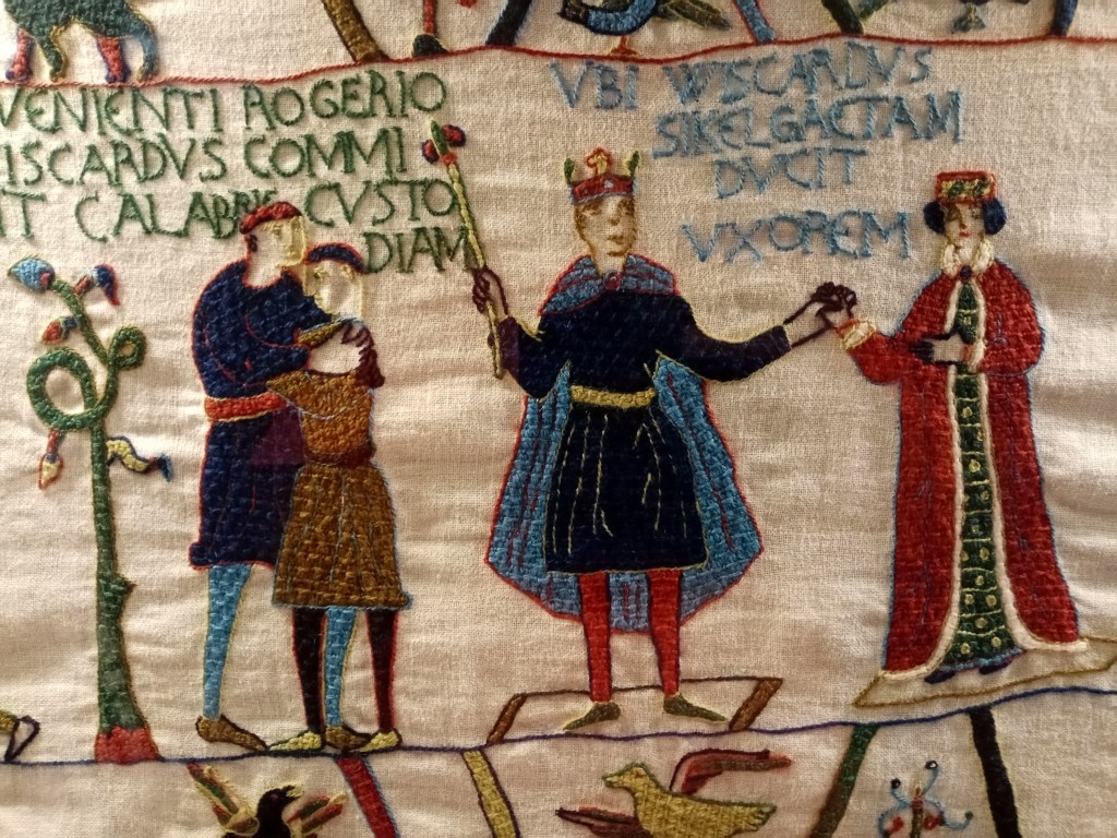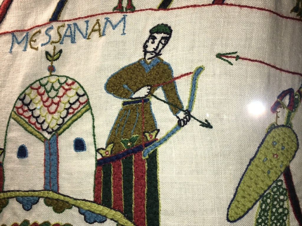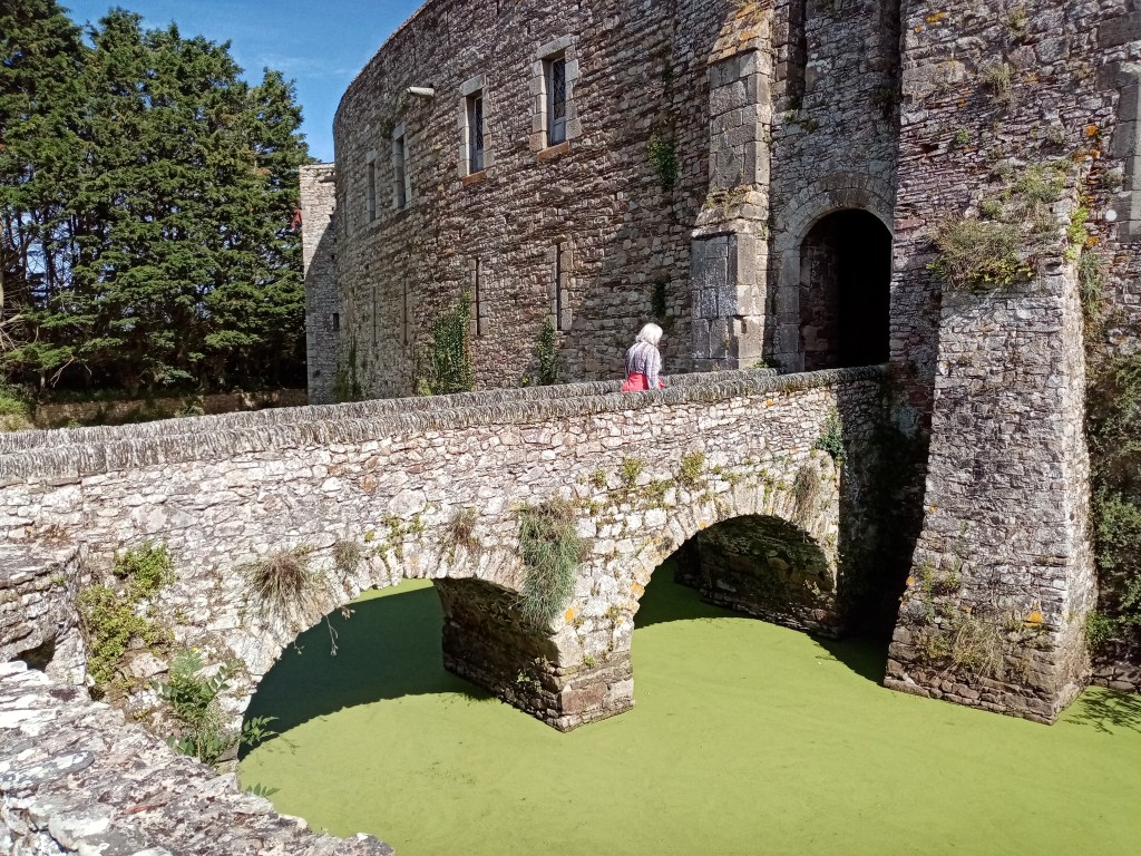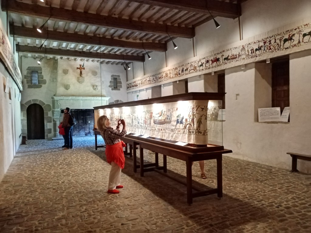 Molto ben segnalato già nelle ultime quattro o cinque rotonde incontrate sul percorso, il Chateau Fort de Pirou è servito da un ampio parcheggio (gratuito), ed è un luogo di rara bellezza, restaurato e mantenuto in maniera eccellente a cura di una fondazione creata nel 1966 dall’Abate Marcel Lelégard. Circondato da una tripla cinta muraria e da un largo fossato, è una vecchia roccaforte di epoca normanna eretta dai primi Signori di Pirou, imparentati con i Signori di Hauteville (Altavilla), conquistatori dell’Italia meridionale. Offre alla visita sia gli spazi esterni (la panetteria, il torchio, la cappella, la grande sala delle riunioni e le antiche scuderie) sia gli spazi interni del mastio (le cucine, la sala delle guardie, la sala da pranzo), sia il camminamento sugli spalti, a cui si accede attraverso una ripida scaletta in legno. Nella sala delle riunioni si trova il ricamo di Pirou, realizzato da M.me Ozenne tra il 1976 e il 1992 studiando il punto sul modello di quello di Bayeux. La tela, lunga 58 m, racconta la conquista normanna dell’Italia meridionale e della Sicilia. Il biglietto d’ingresso non è per niente caro e la visita si svolge in piena libertà. Nella foresteria è collocato un piccolo ma grazioso negozio di souvenir. Questo sito ci ha letteralmente incantati. Non solo vale il viaggio, merita sicuramente un ritorno quando ripasseremo da queste parti.