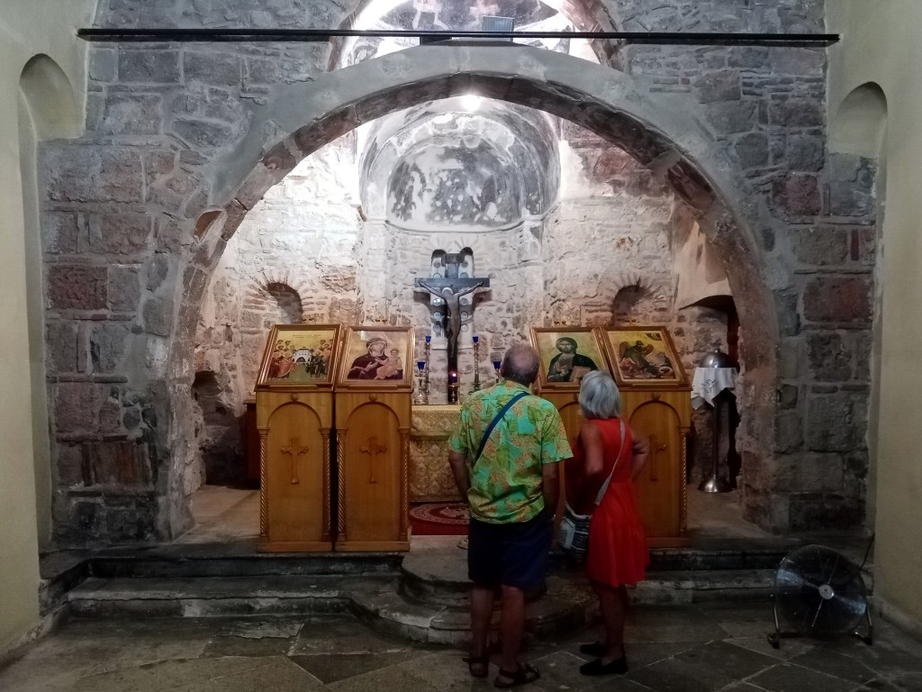 Seconda tappa, il centro antico della città, ai piedi dell’imponente castello, con i suoi negozietti e le sue taverne, che visitiamo dopo il tramonto aspettando l’ora di cena. Molto particolare, la minuscola Chiesa dei Santi Apostoli (Ιερός Ναός Αγίων Αποστόλων), che conserva affreschi di epoca bizantina.