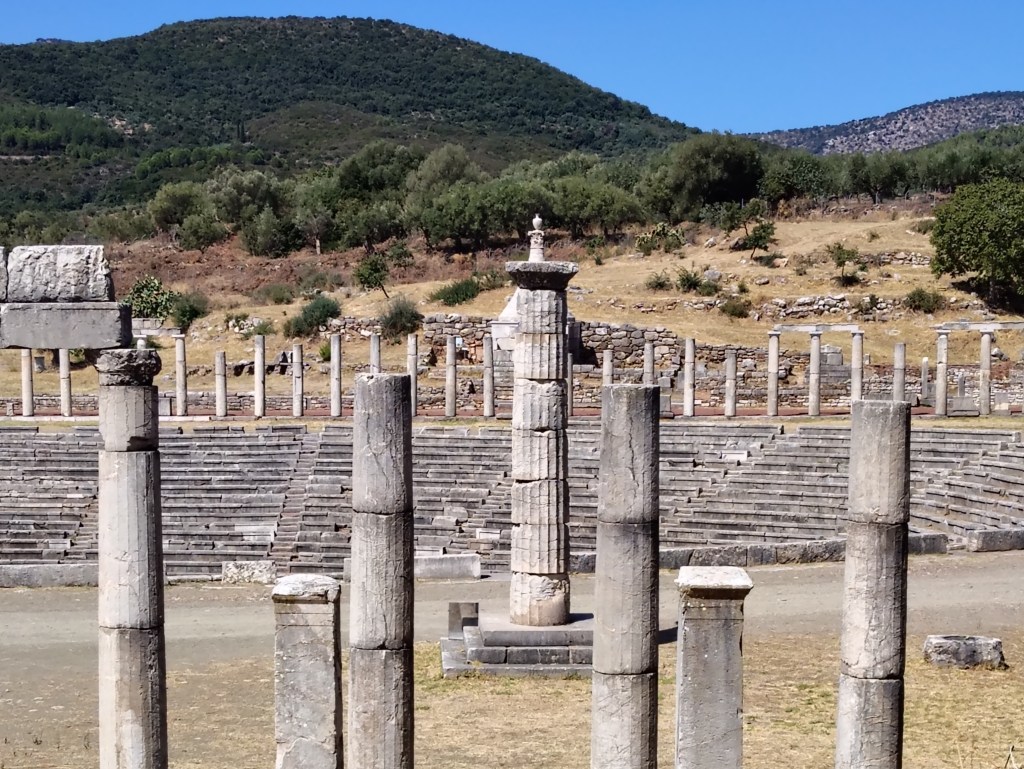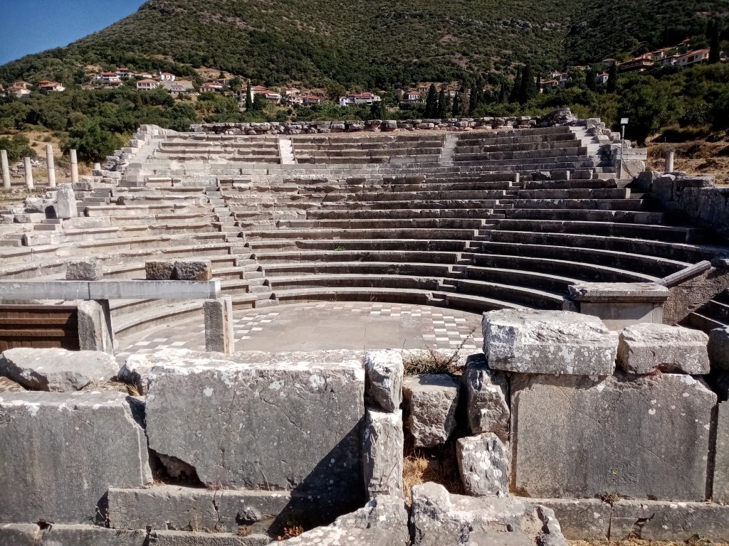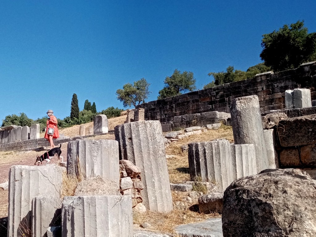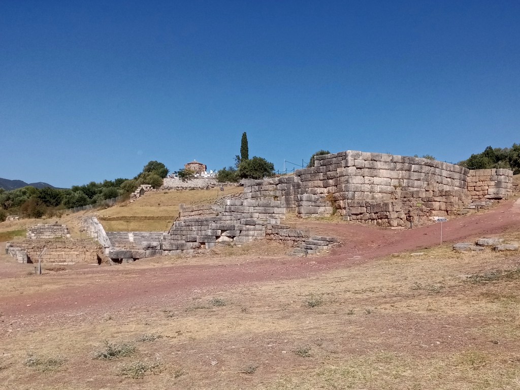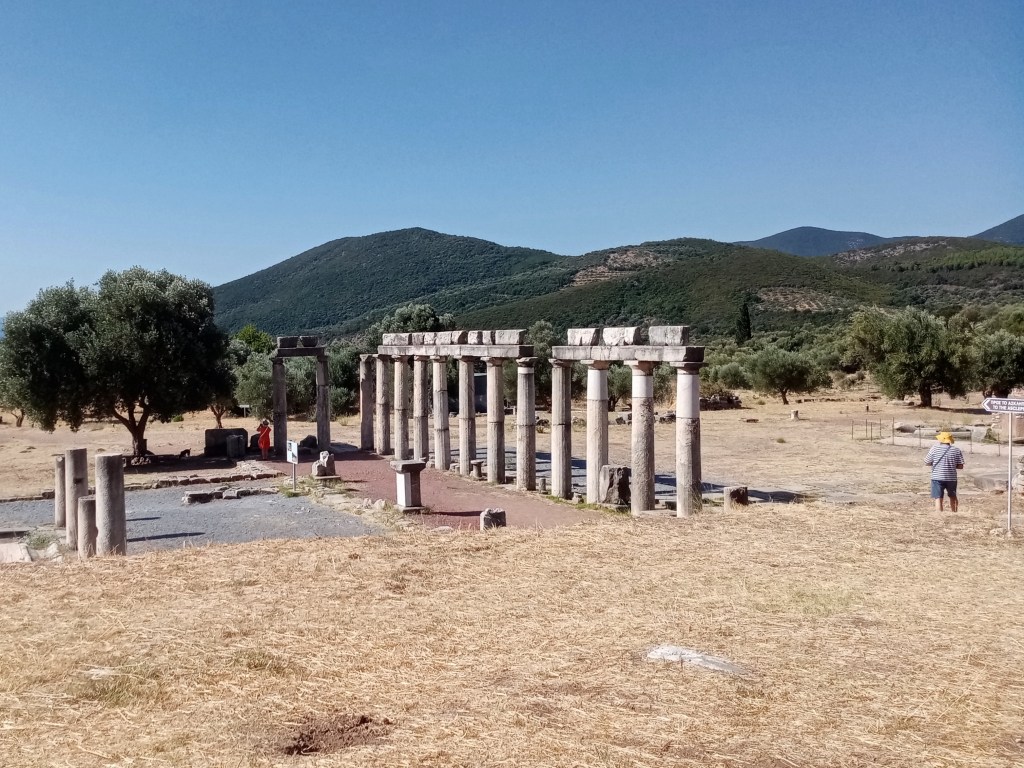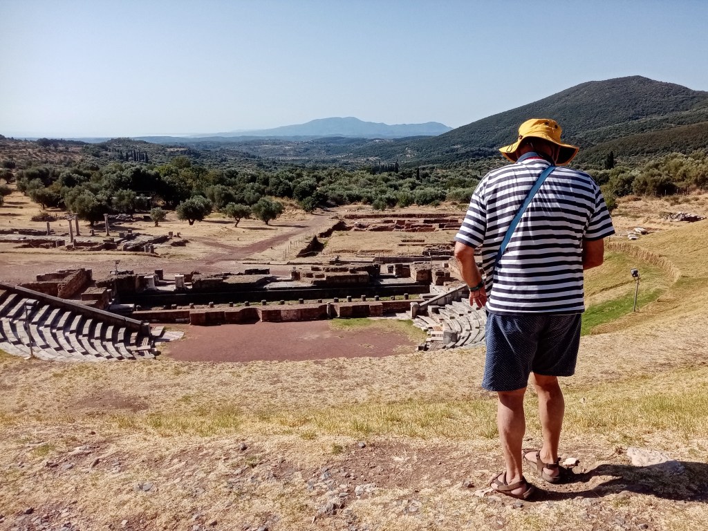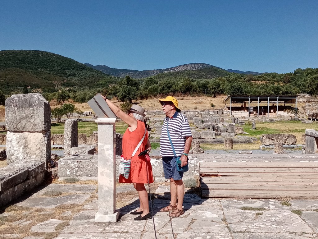 11 SETTEMBRE, GIOVEDÌ. Terza tappa, l’antica Messini, vasta città fondata nel IV sec. a.C., sede di un importante santuario dedicato ad Asclepio e di altri bellissimi edifici come il teatro, il ginnasio, lo stadio e la spettacolare fontana di Arsinoe. Molto interessante, nei pressi dell’ekklesiasteron, una meridiana molto ben conservata e ancora perfettamente funzionante. Accompagnati dall’infaticabile Akis, il caldo non ci ha impedito di affrontare la visita del sito e del piccolo ma esauriente Museo. Il complesso si trova nelle immediate vicinanze del villaggio di Mavrommati, dove parcheggiamo il Dinghy in cerca di ristoro.