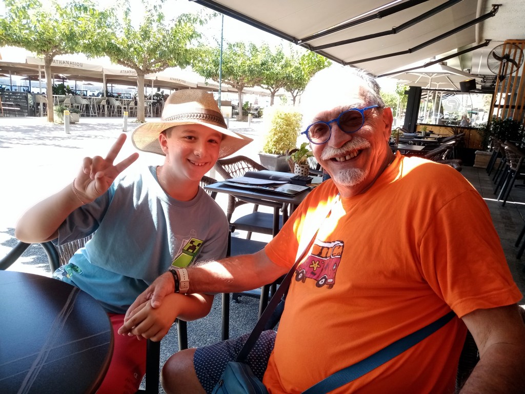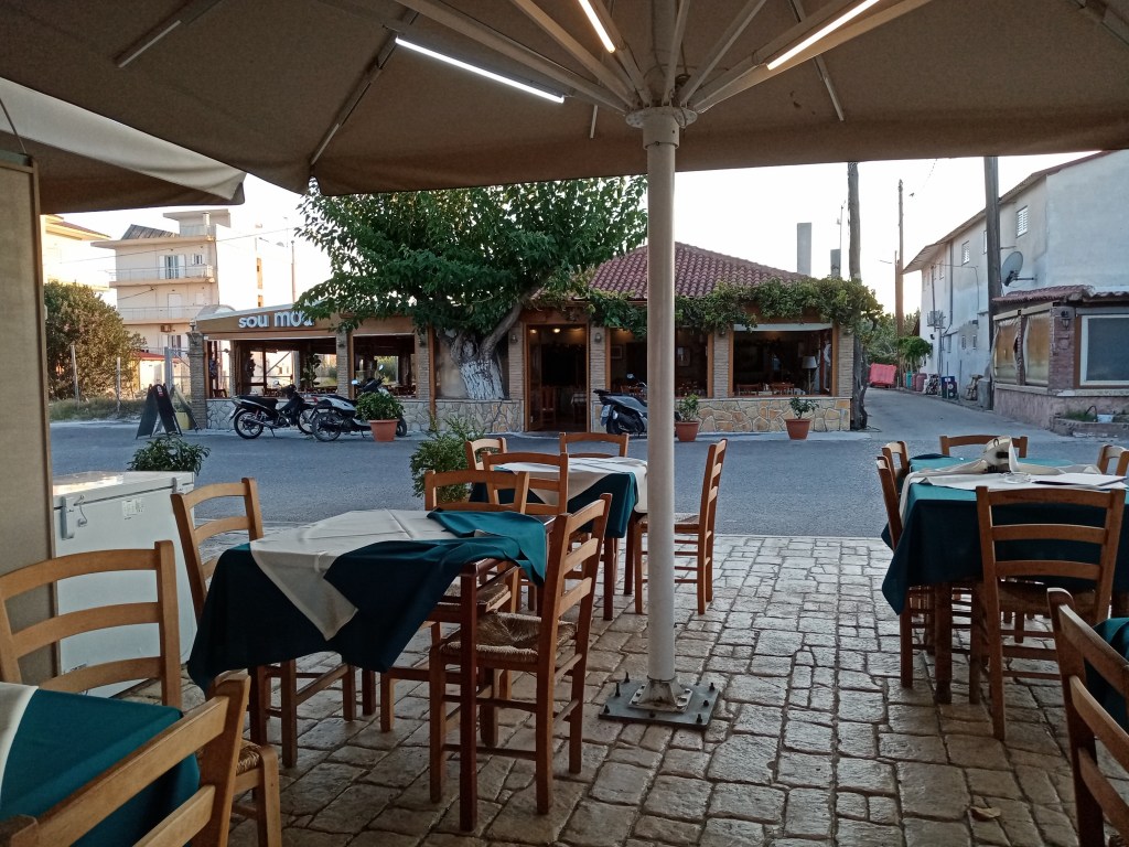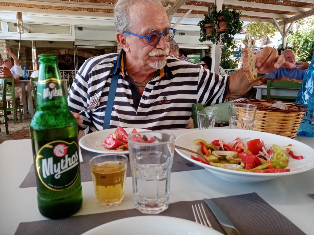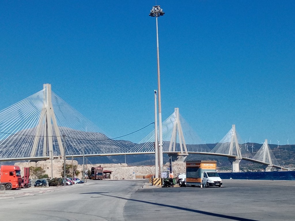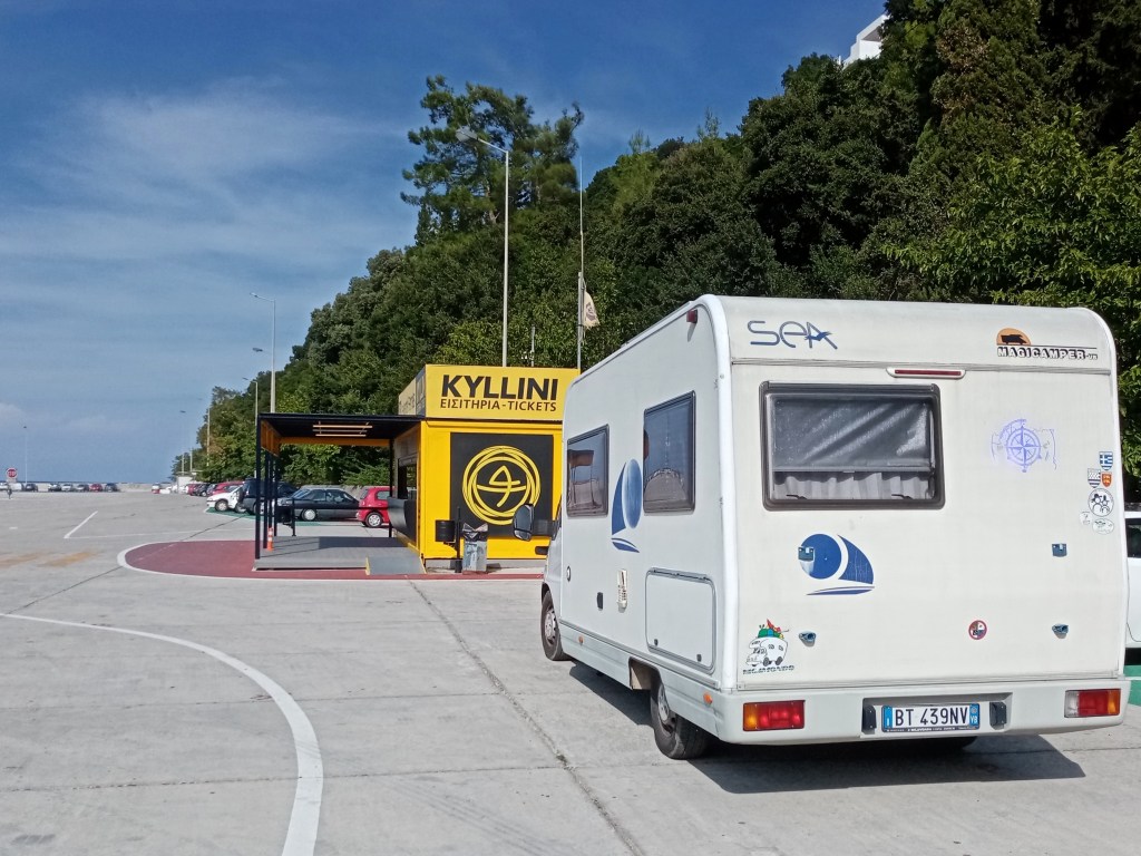 5 SETTEMBRE, VENERDÌ. Sveglia calma, preparativi per la partenza. Verso le 10:30, salutiamo Sagiada facendo il pieno d’acqua alla solita fontana sul molo. La meta di oggi è il porto di Kyllini. Da Igoumenista è bellissimo andare sulla ampia e scorrevole Statale 18 per Preveza; qui, subito dopo il tunnel sotto l’imbocco del Golfo di Ambracia, è stato da pochissimo aperto il raccordo verso la Ionia Odòs-A5, denominato Amvrakìa Odòs-A52. Tutta autostrada; brevissima sosta tattica in una piazzola in vista della spiaggia di Monolithi, e verso le 15 ci immettiamo sul Gefira Charilaos Trikoupis, altrimenti noto come Ponte Poseidon. Il pedaggio è aumentato di soli 2 euro rispetto al 2022, francamente mi aspettavo di più. Superiamo Patrasso. La Ionia Odòs si connette con la Olympia Odòs-A8 e attraversa i resti della vastissima pineta completamente distrutta da un incendio di cui si sente ancora l’afrore e poi si trasforma in una serie di cantieri, che ne porteranno il tracciato fino a Pyrgos. In alcuni tratti il nuovo percorso è bello e scorrevole, in altri un po’ accidentato; così usciamo e prendiamo la classica Statale 9. A Lechanià svolta a destra, e in 15 km siamo a destinazione. In tutto, di km ne abbiamo fatti 340, un vero tappone per le nostre medie abituali in Grecia. Sono solo le cinque del pomeriggio, decidiamo di acquistare già il biglietto per domani verso Cefalonia (questo sì molto caro, 125 euro), e perdiamo un po’ di tempo per cercare un buona sistemazione per la notte. Niente spazio nel posteggio sul lungomare dove ci eravamo fermati l’ultima volta, usciamo dall’abitato ma non siamo convinti, e dopo un po’ di giri esplorativi optiamo per una spianata nei pressi dell’ingresso del porto, a portata di doccia. Cena felice da Sou-Mou, una delle più rinomate taverne di Kyllini; meno felice il rientro al Dinghy, che appena aperta la porta viene invaso dalle zanzare. Poco male: fatta doccia veloce ci tappiamo dentro, e dopo un aspro e accurato combattimento, tutto a posto e notte molto tranquilla.