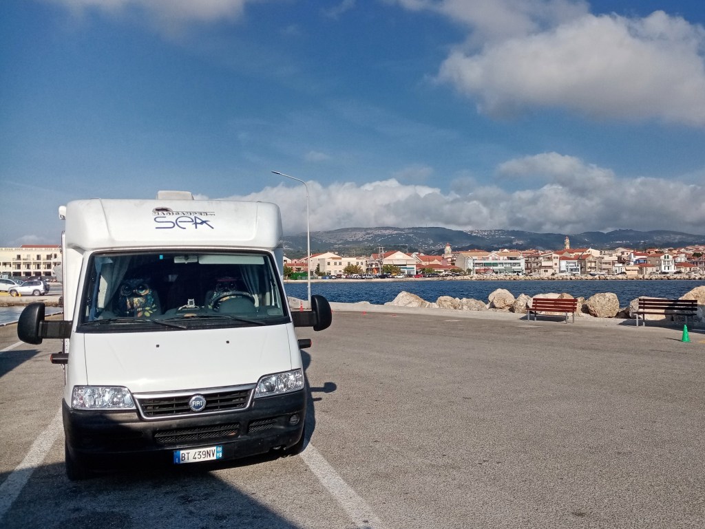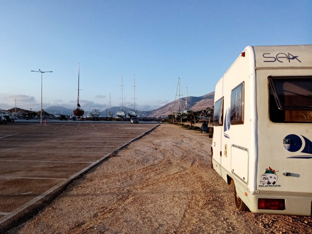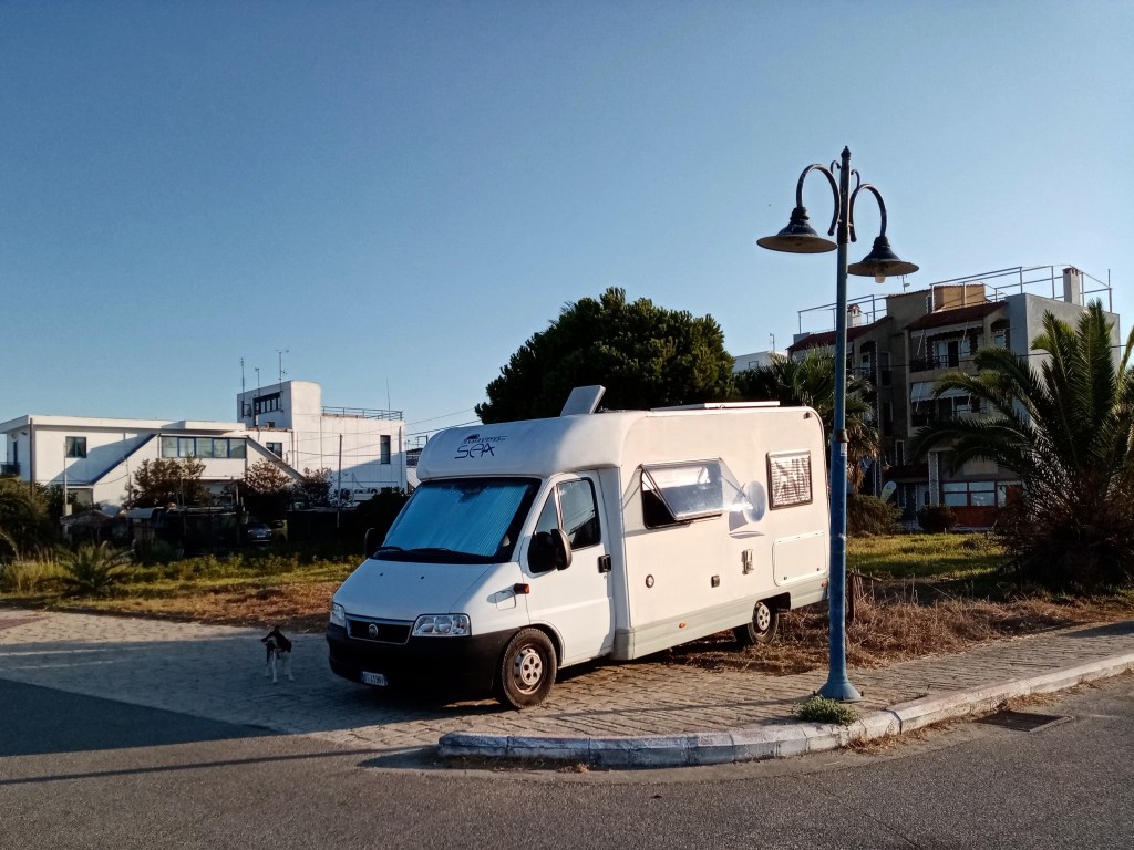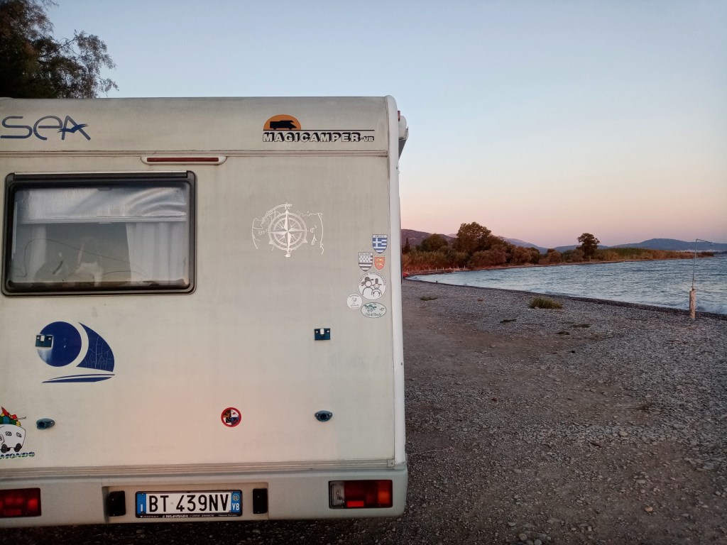 20 SETTEMBRE, SABATO. Mi sveglio prima dell’alba, per l’immancabile foto prima di prepararci per il tappone dell’ultimo giorno di viaggio: più o meno 300 km di cui quasi metà in autostrada fino a Preveza, e da qui in avanti la scorrevolissima Statale 18. Partiamo verso le 8, solita Statale 8 fino a Rio, solito ponte dove si chiude il cerchio del nostro periplo, solite piccole tappe per un po’ di spesa e per il pranzo, e alle 14 siamo al Camperstop Platarià. Ho sempre pensato che la soluzione di vietare la sosta libera notturna sul lungomare della bella cittadina (vedi qui nella sezione IL MARE la pagina dedicata alla Tesprozìa) ed in contemporanea creare spazi adeguati per la sosta regolamentata fosse la soluzione più realistica per evitare un affollamento di camperisti-e-basta che stava diventando fastidiosissimo per noi camperisti edonisti. L’area è confortevolmente spartana, dotata anche di un bagnetto/doccia, al prezzo di 15 euro a notte energia inclusa ci può anche stare. Quasi tutta al sole, ci capita in sorte l’unico spazio ben ombreggiato, che ci permette di chiudere in bellezza questo ritorno in Grecia dopo tre anni di assenza.