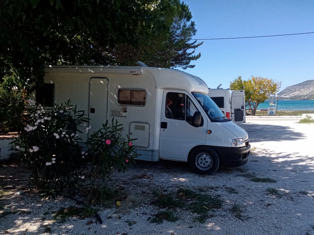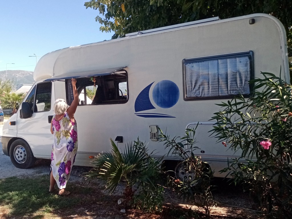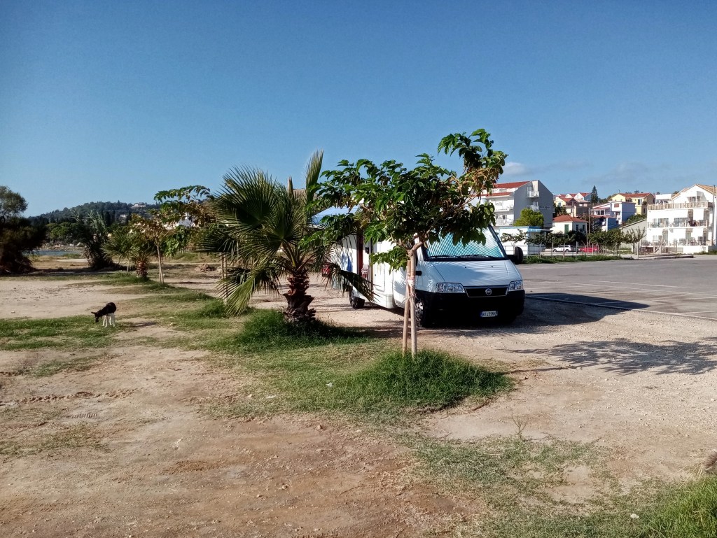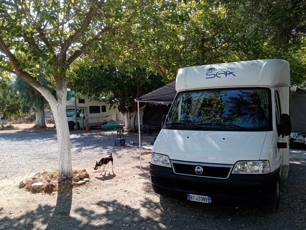 20 SETTEMBRE, SABATO. Mi sveglio prima dell’alba, per l’immancabile foto prima di prepararci per il tappone dell’ultimo giorno di viaggio: più o meno 300 km di cui quasi metà in autostrada fino a Preveza, e da qui in avanti la scorrevolissima Statale 18. Partiamo verso le 8, solita Statale 8 fino a Rio, solito ponte dove si chiude il cerchio del nostro periplo, solite piccole tappe per un po’ di spesa e per il pranzo, e alle 14 siamo al Camperstop Platarià. Ho sempre pensato che la soluzione di vietare la sosta libera notturna sul lungomare della bella cittadina (vedi qui nella sezione IL MARE la pagina dedicata alla Tesprozìa) ed in contemporanea creare spazi adeguati per la sosta regolamentata fosse la soluzione più realistica per evitare un affollamento di camperisti-e-basta che stava diventando fastidiosissimo per noi camperisti edonisti. L’area è confortevolmente spartana, dotata anche di un bagnetto/doccia, al prezzo di 15 euro a notte energia inclusa ci può anche stare. Quasi tutta al sole, ci capita in sorte l’unico spazio ben ombreggiato, che ci permette di chiudere in bellezza questo ritorno in Grecia dopo tre anni di assenza.