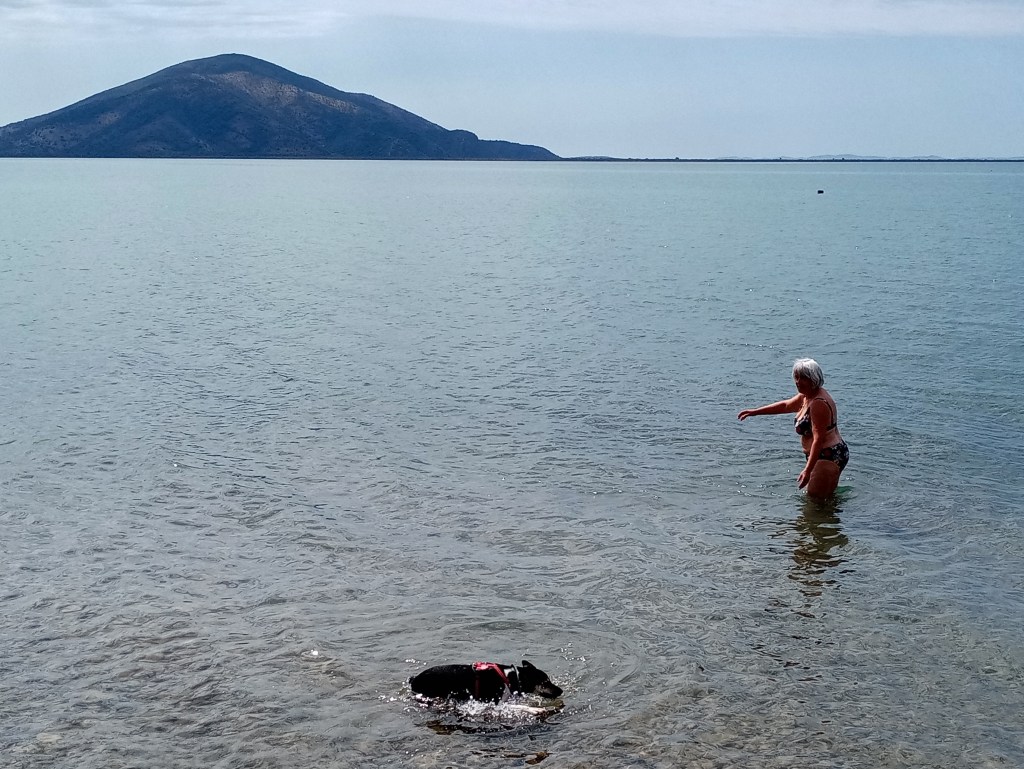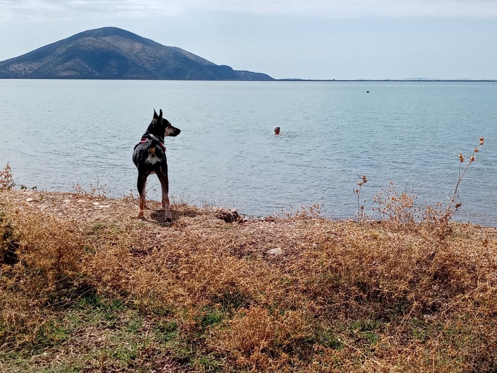 4 SETTEMBRE, GIOVEDÌ. Mi sveglio prima dell’alba, farei due passi ma ci sono solo 15° e si sta bene dentro. Il piano prevede di restare qui oggi in sosta, a goderci – finalmente! – il mare, e domani partenza verso il Peloponneso ionico, dove non siamo più stati dal 2014, con un ritorno a Cefalonia, mai più toccata dal 2009. In mattinata Mirella prova a convincere Trilli a entrare in acqua, ma c’è poco da fare, la ragazza dissente. Non sono arrivate le solite mucche, ma nel pomeriggio ci raggiunge un pastore con un bel gregge di capre. Trilli è felice. Siamo proprio sicuri di partire già domani?