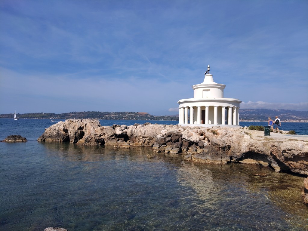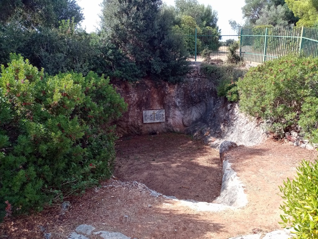 8 SETTEMBRE, LUNEDÌ. Alle 8:00 sveglia, alle 9:00 supermercato per scorte, alle 9:10 siamo sul pontile in attesa del traghetto. Mezz’ora di traversata, raggiungiamo Argostoli, affollatissima, ed è evidente la differenza con Lixouri, che restando fuori dai circuiti turistici è molto più tranquilla. Anche così, riusciamo a trovare posto per il Dinghy un po’ prima del Faro di San Teodoro. Dopo la passeggiata al faro, riprendiamo la strada lanciando uno sguardo veloce alla Casetta rossa, residenza privata dove furono radunati gli ufficiali italiani della Divisione Acqui prima di essere fucilati. La casa in effetti non è quella originale, fu ricostruita dopo il terremoto del 1953 mantenendo forma e colore della precedente. A meno di un km, la Fossa delle fucilazioni, una delle tre in cui “vennero ammassate le salme di parte dei 153 ufficiali della Divisione Acqui fucilati dai tedeschi a San Teodoro il 26-26 settembre 1943”, come recita l’epigrafe in italiano e in greco posta su una delle pareti calcaree della fossa. Come la Casetta rossa, si trova in un terreno privato recintato, che mani pietose mantengono in perfetto ordine e libera dalla vegetazione. Sono, questi tre Luoghi della Memoria, il motivo per cui in questo viaggio ho voluto tornare a Cefalonia. Da qui, ci spostiamo velocemente al Memoriale che sorge in cima alla collina chiamata “Monte Telegrafo”, già visitato in precedenti occasioni, senza dimenticare di dare un saluto anche alla piccola edicola di Agia Varvara (Santa Barbara), edificata dagli artiglieri italiani durante l’occupazione dell’isola e tenuta anch’essa in ordine da mani pietose; e alle rovine della casermetta della prima batteria costiera, a presidio dell’imbocco del golfo di Argostoli, quasi interamente ricoperte dalla macchia.
