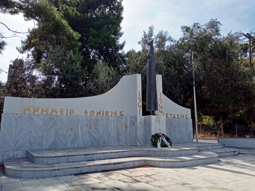 Dopo aver scambiato due chiacchiere con una simpatica coppia di italiani in moto e due anziani agricoltori greci in pausa relax all’ombra dei grandi pini che circondano il monumento, verso le 16 ci spostiamo in direzione di Poros dove abbiamo deciso di dormire in attesa dell’imbarco. Lungo il percorso facciamo una breve sosta al Memoriale della guerra di liberazione, che ricorda anche l’apporto dato dai militari italiani sopravvissuti all’eccidio impegnati nei reparti dell’ELAS/EAM. Parcheggiato il Dinghy, torniamo dopo 16 anni a bere una portokalada nel bar To Spitisio, dove eravamo stati appena sbarcati nel 2009, e così il cerchio si chiude.