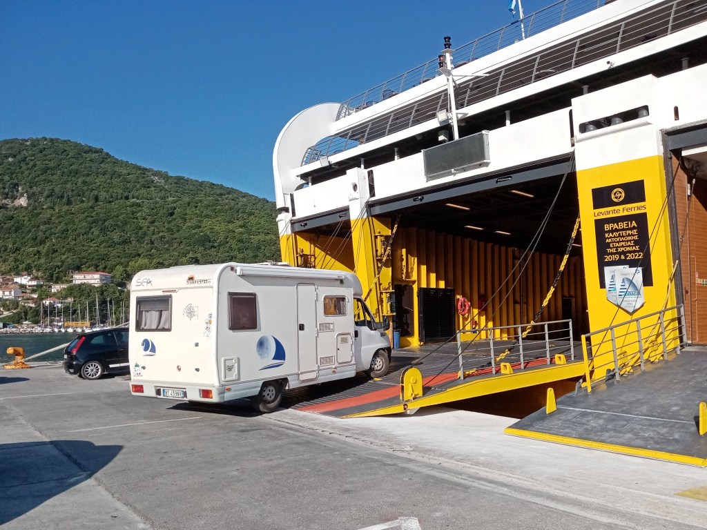 Dopo pranzo, tiro le somme. Meno km, meno punti tappa per la notte (10, di cui 2 in campeggio e 1 in camper-stop), più ristoranti, meno bar (solo 2 volte più 1 gelateria), molti ritorni ma anche luoghi nuovi, in particolare l’8 settembre Capo San Teodoro e Fossa delle fucilazioni a Cefalonia. Novità assoluta vita in campeggio in Grecia, direi non male, o forse abbiamo avuto fortuna nella scelta. Meno zanzare, solo la prima notte su a Sagiada). Meno pastasciutta, più verdura, meno pane, solita dose di tiro-spanakopita. Niente mare per me, Mirella poco. Nuovi incontri con amici di Facebook (Aspasìa a Lixouri e Rino a Kyllini). Nuove navi (Superfast III e IV), ma io forse sulla III c’ero già stato da solo, nel lontanissimo 2003. Nessun negozio, solo per cibarie; solo 1 volta in drogheria a Kalamàta vecchia e dal solito Γιοβας di Diakoftò. Arriva l’ora di lasciare l’area, tempo scaduto, anche se con la solita tolleranza ellenica, efkaristò polì. In attesa del check in, che dovrebbe essere verso le 21, ci piazziamo lungo la statale due km prima del porto, presso la chiesetta di Agios Nektarios, dove sarebbe necessario un radicale intervento di valorizzazione del piazzale, ma chest’è. Scende la sera, parcheggiamo alla stazione marittima di Igoumenitsa dove scopriamo che la partenza della nave è stata spostata di tre ore.